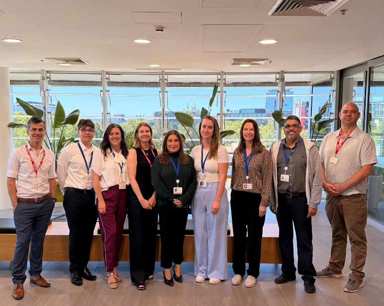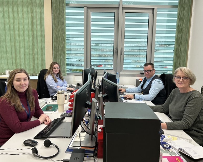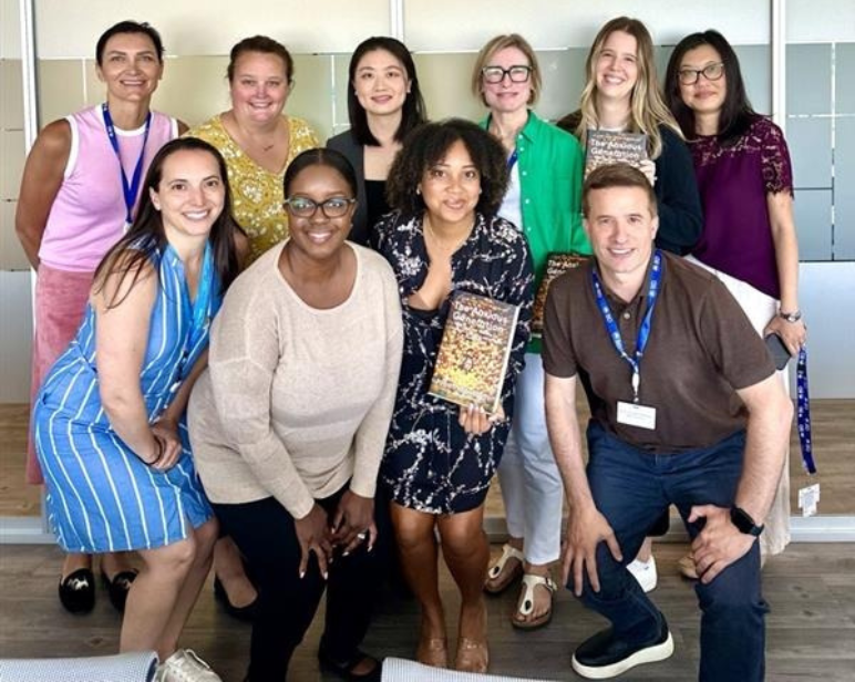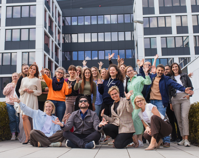 Eight Employees smiling and taking a photo